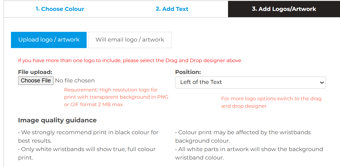 This tool shows you a real-time preview of your wristband—complete with your text, logo, and chosen colours—so you know exactly what to expect. This helps avoid surprises and gives you confidence in the final product.